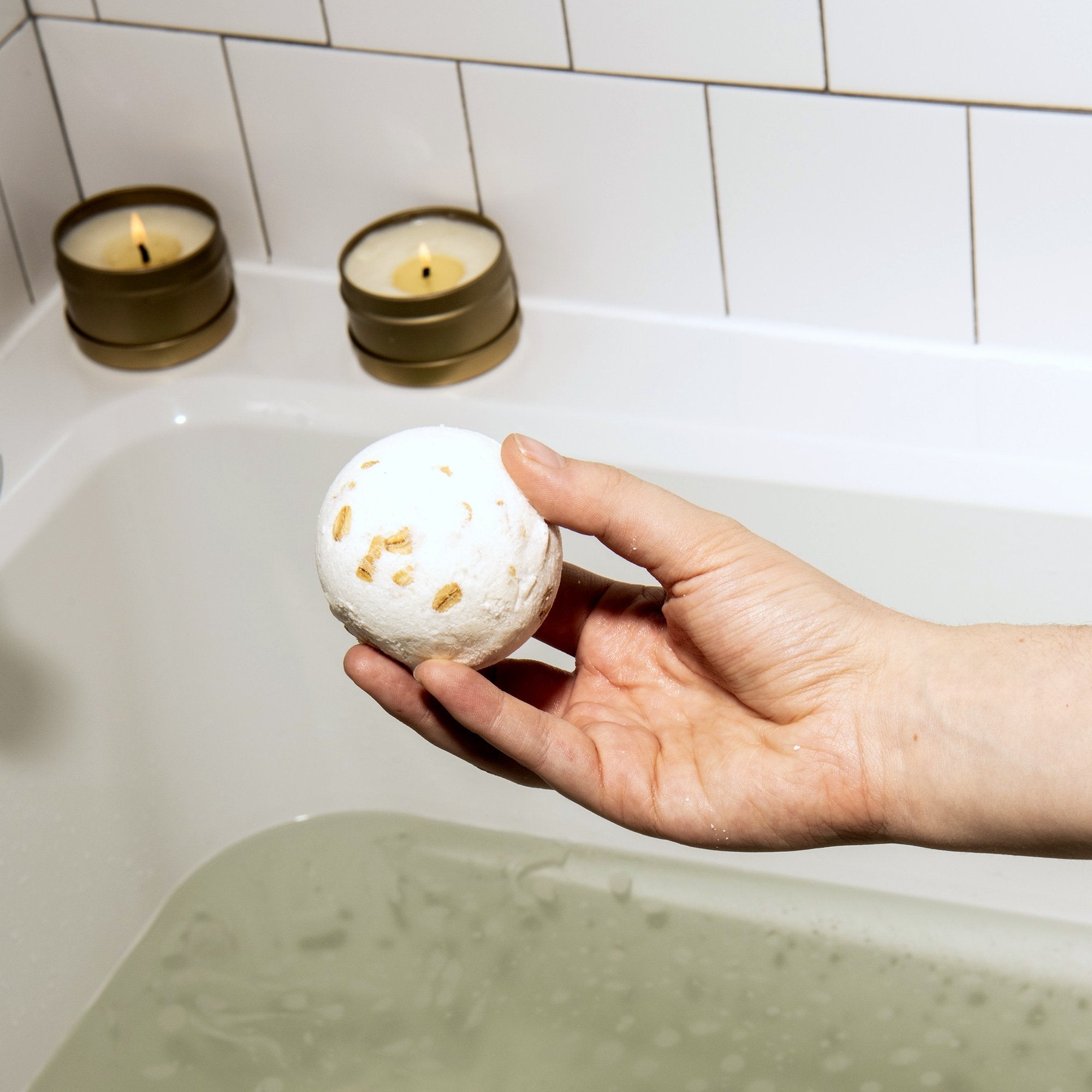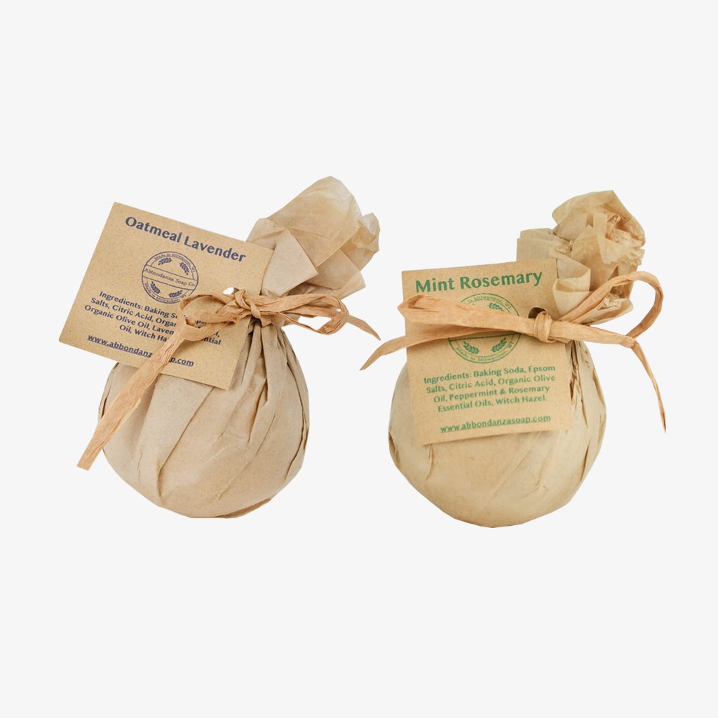 Soothe your spirit and mind with a relaxing soak using these fizzy bath bombs. Feel stress and tension fall away as oatmeal + lavender or mint + rosemary dissolve around you. They come wrapped in compostable and recyclable paper, so there's nothing to throw away except for a rough day. They're the bomb!
